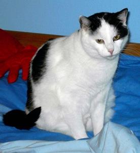 Kater MAX ist 4 Jahre alt. Er ist schwarz-weiß, mit schwarzem Rücken, weißem Bauch mit schwarzen Flecken sowie weiße Pfoten. Sein Schwanz ist schwarz mit einer weißen Schwanzspitze.
