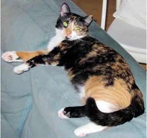 LILY ist 6 Jahre alt und eine Schildpattkatze. Ihre besonderen Merkmale sind ein helles Kehlchen und ein fast nackter Bauch (aufgrund einer Hormonstörung). LILY ist Freigängerin.