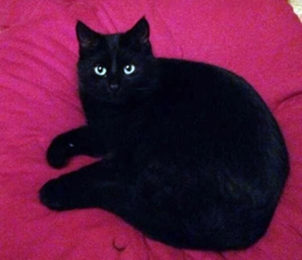 Kater GREENY ist 3 Jahre alt. Sein Fell ist komplett schwarz, nur an der Nase ist es etwas heller. GREENY ist Freigänger und sehr zutraulich auch Fremden gegenüber: Er fordert Streicheleinheiten geradezu heraus.
