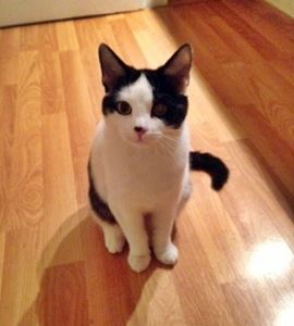 Kater FELIX ist ca. 1 Jahr alt. Er hat ein schwarz-weißes Fell mit weißen Pfoten und schwarzem Schwanz. Erkennungszeichen sind ein schwarzer Fleck auf der Nasenspitze und sein schwarz umrandetes linkes Auge. FELIX ist Freigänger und Fremden gegenüber eher scheu, ist aber sehr neugierig.