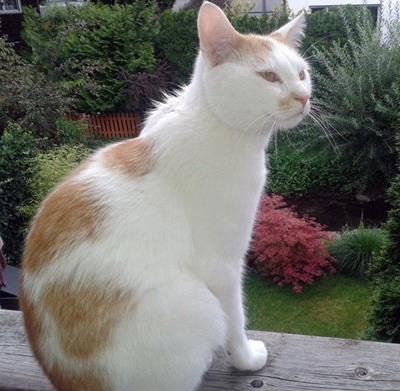 Kater CREMIE ist 10 Jahre alt und hat ein rötliches Fell mit weiß. Er ist Freigänger, aber neu in der Gegend - es wird vermutet, dass er in seine alte Heimat in Oberhaching unterwegs ist. CREMIE ist Fremden gegenüber scheu.