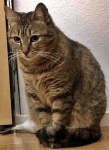 RIAS ist eine 2-Jahre alte BKH-Kätzin mit grau getigertem Fell und einer dunklen Nasenspitze. Auffallendes Erkennungszeichen sind ihre Augenfarben: rechts blau und links grün. RIAS ist Freigängerin und trug bei ihrem Verschwinden ein rosa Halsband. Sie wurde zuletzt am Aubinger S-Bahnhof gesehen.