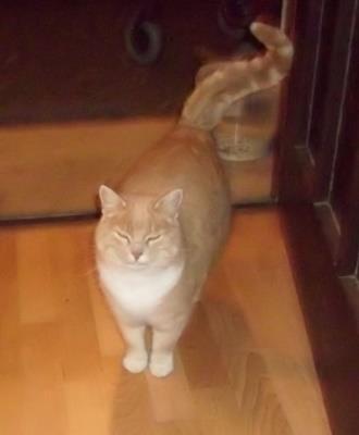 Kater TIGER ist 2 Jahre alt und groß. Sein Fell ist hellrot getigert. Besonderes Merkmal: Seine geknickte Schwanzspitze. Er ist Freigänger und Fremden gegenüber ruhig, lieb und zutraulich.