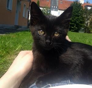 CAMARO ist weiblich und 5 Monate alt und schlank. Sie hat ein schwarzes Fell mit wenigen weißen Brusthärchen. Sie hat braune Augen und ein schmales, eher spitzes Köpfchen. Sie durfte schon ins Freie, ging aber nie weit weg. Sie ging mittags raus, kam aber nicht zurück.