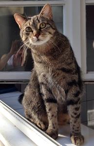 Kater TIGER ist 1 Jahre alt. Sein Fell ist braun getigert, am Bauch und Kinn ist er heller. Er hat einen getigerten Schwanz mit schwarzer Schwanzspitze. TIGER ist Freigänger und Fremden gegenüber sehr zutraulich. Tiger ist jetzt schon älter als auf dem Foto abgebildet.