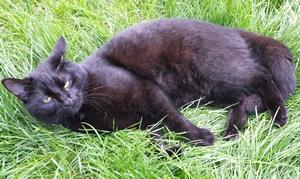 Kater FINDUS ist 2 Jahre alt. Sein Fell ist schwarz mit nur vereinzelten weißen Haaren auf der Brust und am Rücken. FINDUS ist Freigänger. Er ist sehr zutraulich und "spricht" sehr viel.