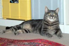 Kater FELIX ist 15 Jahre alt. Er ist grau getigert mit weißen Pfoten, weißer Halskrause und Hals. Er hat einen braun/weiß gestreiften "Hänge"-Bauch. Im Oberkiefer fehlt ein Zahn (gezogen am 18.10.04). FELIX ist Freigänger, aber kein Streuner, er kommt normalerweise zuverlässig und regelmäßig nach Hause. Weitere Eigenschaft: Er "redet" viel.