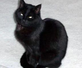 Kater PAUL ist 1 1/2 Jahre alt. Er hat ein komplett schwarzes Fell bis auf einige weiße Haare auf der Brust. PAUL ist ein reiner Wohnungskater.