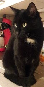 Kater MORITZ ist 5 Jahre alt. Er hat ein schwarzes Fell mit wenigen weißen Stellen am Bauch sowie einem weißen Brustfleck. MORITZ ist Freigänger und sehr scheu gegenüber Fremden. MORITZ hat ein Loch im Herz und braucht dringend seine Medikamente.