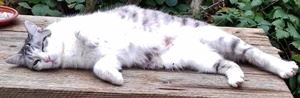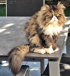 LEO ist ein Perserkater und 6 Jahre alt. Er hat ein langes graues Fell mit weißem Nasen und Brustbereich sowie vier weißen Pfoten (die linke Vorderpfote ist nur an der Spitze weiß). LEO ist überwiegend im Garten und nicht der typische Freigänger. Er ist Fremden gegenüber eher scheu und läßt sich normalerweise nicht anfassen.