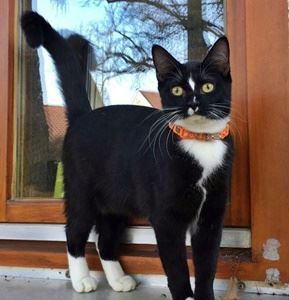 MALA ist 9 Monate alt. Sie hat ein schwarz-weißes Fell mit schwarzem Rücken und schwarzem Schwanz mit weißer Schwanzspitze. Gesicht, Brust, Bauch und Beine sind weiß. MALA ist Freigängerin und Fremden gegenüber eher scheu.