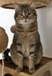Kater LUCA ist 3 Jahre alt. Er hat ein grau-schwarz getigertes Fell mit leichten Pinselohren. Er hat helle Fellstellen unterhalb der Nasenspitze sowie am Kinn. LUCA ist innerhalb des Innenhofs Freigänger, kennt aber die weitere Umgebung nicht. Er ist eher ängstlich bei fremden Menschen.