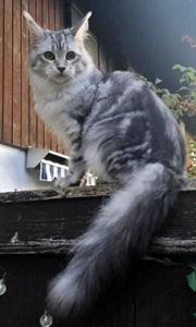 MAXI ist 10 Jahre alt. Sie hat ein dezent grau gestromtes Fell mit weißem Bauch und weißen Pfoten. Ihr Schwanz ist dunkel getigert mit schwarzer Schwanzspitze. MAXI ist Freigängerin und fremden Personen gegenüber sehr scheu.