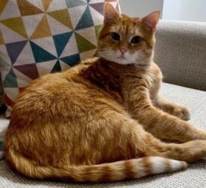 Kater TIGGER ist 9 Jahre alt. Er hat ein rot getigertes Fell mit hellem Schnauzen/Kinnbereich und rot-weiß getigertem Schwanzende. TIGGER ist zuverlässiger Freigänger und war noch nie über Nacht weg. Er ist Fremden gegenüber eher scheu.