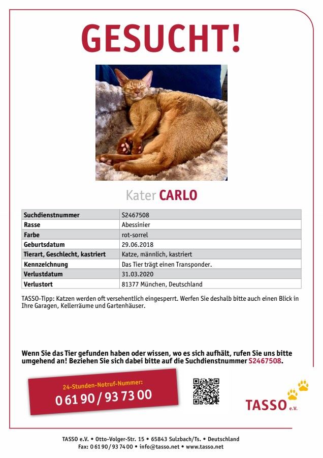 CARLO vermisst seit 31.03.2020