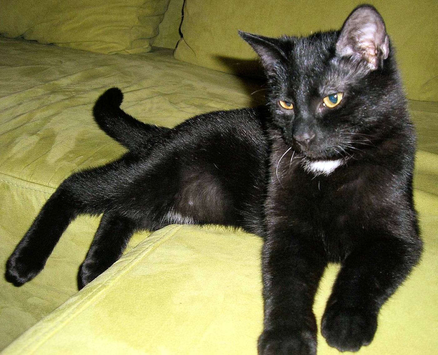BLÜMCHEN ist 2,5 Jahre alt. Ihr Fell ist schwarz mit einem weißen Brustfleck. BLÜMCHEN ist Freigängerin, relativ zierlich und schüchtern.