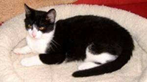 Kater PINGU ist 1 Jahr alt. Sein Fell ist schwarz/weiß. Er hat einen schwarzen Schwanz. PINGU ist zwar sehr menschenbezogen, Fremden gegenüber reagiert er jedoch sehr ängstlich.
