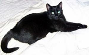 Kater CARLO ist 2 1/2 Jahre alt. Er ist schlank und von drahtiger Statur. Sein Fell ist rabenschwarz, seine Nase ebenso. Er hat gelbliche Augen. Besonderes Kennzeichen: Der linke obere Eckzahn ist plombiert.