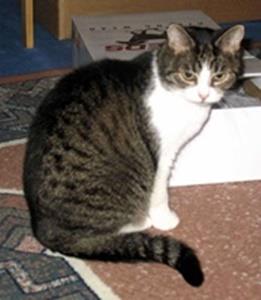 Kater MIKESCH ist 14 Jahre alt. Sein Rücken und Schwanz sind schwarz, sein Bauch und die Beine sind weiß. Am Kinn hat er einen schwarzen Fleck. Er ist herzkrank. MIKESCH ist Freigänger, verläßt aber normalerweise den Garten nicht. Er ist sehr anhänglich, Fremden gegenüber ist er anfänglich recht scheu.