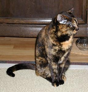 BELANA ist 4 Jahre alt. Sie ist eine Schildpattkatze (Fellfarben schwarz/rot/beige). BELANA ist eine reine Wohnungskatze.
