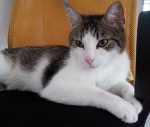 Kater MERLIN ist ca. 1 Jahr alt. Er hat ein komplett weißes Fell und gelbe Augen. Er ist normalerweise Freigänger und Fremden gegenüber sehr zutraulich.