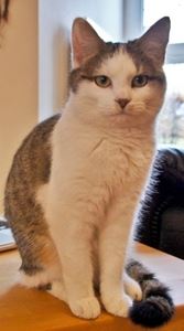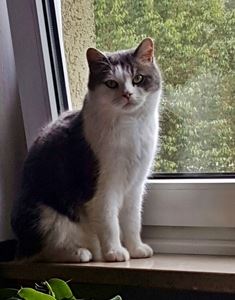 Kater TONI ist 7 Jahre alt und ein reiner Wohnungskater; er kennt sich im Freien nicht aus. TONI hat ein grau-weißes Fell mit einem dunklen Nasenrücken. Er ist Fremden gegenüber sehr scheu. Er ist vom Balkon im 3. Stock gesprungen/gefallen.