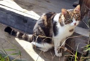 ENNI ist 12 Jahre alt. Sie hat ein braun getigertes Fell mit weißer Schnauze. Erkennungszeichen ist eine gut sichtbare Einkerbung in der rechten Ohrspitze. ENNI ist Freigängerin und Fremden gegenüber sehr zutraulich.