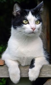 Kater PIANO ist 4 Jahre alt. Er hat ein schwarz-weißes Fell mit weißen Pfoten. Er hat auf seinem Rücken einen schwarzen Fleck in Herzform. PIANO ist Freigänger und Fremden gegenüber eher zutraulich.