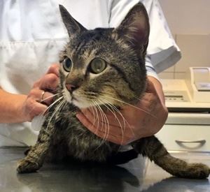 Am Donnerstag, 16. Februar 2017 (abends): Diese ca. 7 Monate junge graue Fundkatze wurde im Petueltunnel in München gefunden. Sie saß in dem kleinen Nebentunnel der zur A 9 führt.