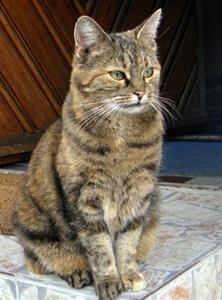 Kater TIGER ist 1 Jahre alt. Sein Fell ist braun getigert, am Bauch und Kinn ist er heller. Er hat einen getigerten Schwanz mit schwarzer Schwanzspitze. TIGER ist Freigänger und Fremden gegenüber sehr zutraulich. Tiger ist jetzt schon älter als auf dem Foto abgebildet.