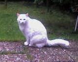 BELLA ist 17 Jahre alt, groß und mager. Sie hat ein langes, struppiges komplett weißes Fell und einen buschigen Schwanz. Sie ist Freigängerin, extrem scheu und lässt sich nicht anfassen.