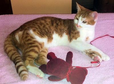 READY ist ca. 1,5 Jahre alt. Er hat ein rot-weißes Fell (rot getigerter Rücken, weißer Bauch und Brust). Auffallend ist ein roter (oranger) Fleck um Maul und Nase. READY ist Freigänger und Fremden gegenüber sehr aufgeschlossen und zutraulich.