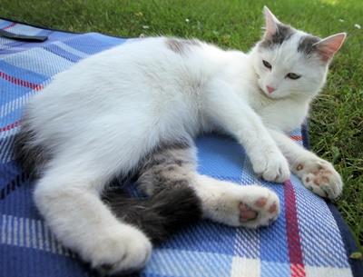 Kater LILLER ist erst 7 Monate alt. Seine Fellgrundfarbe ist weiß mit dunkelgrauen getigerten Flecken und einem getigerten Schwanz. LILLER ist Freigänger. Er ist Fremden gegenüber eher scheu und versteckt sich gerne.
