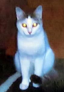 SHIRO ist 1 Jahr alt. Er ist ein Türkish-Van-Mix-Kater mit weißem kurzem Fell. Er hat bernsteinfarbene bzw. braune Augen (das rechte wird zudem nach außen hin etwas bläulich). SHIRO ist Freigänger und Fremden gegenüber eher reserviert.