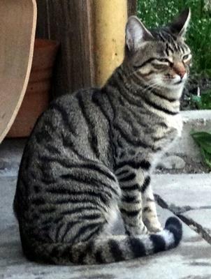 Kater PANNY ist 6 Jahre alt und groß (er wog zuletzt ca. 6 kg). Seine Mutter war eine Perserkatze, daher hat er ein längeres schwarz getigertes Fell und einen buschigen Schwanz. Er hat kleinere Stellen mit weiß (u.a. am Kinn). Er ist Freigänger.