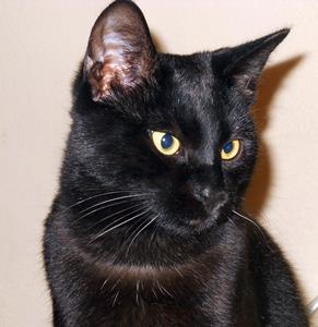 Kater MICKY ist 5 Jahre alt. Sein Fell ist schwarz mit weißem Brustfleck. Er hat eine laute Stimme.