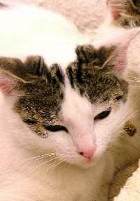 Kater EMIL ist 2 1/2 Jahre alt. Sein Fell ist weiß mit schwarz getigerten Flecken. EMIL ist ein reiner Wohnungskater. Er ist vom Balkon gestürzt.