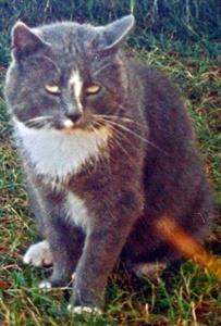 LUCY ist 10 Jahre alt. Ihr Fell ist schwarz-grau getigert. Ihre Nase und Brust sind weiß. Ihr Bauch ist ebenfalls weiß und hängt bei den Hinterbeinen als kleines Säcklein (vom Kastrieren), das beim Laufen hin- und herschlägt. Sie ist recht groß und hat grüne Augen. LUCY ist fremden Menschen gegenüber ziemlich scheu und läßt sich in der Regel auch nicht anlocken.