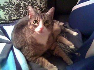 Kater BAMBAM ist ca. 4 Jahre alt. Er ist braun-schwarz getigert, hat eine schwarze Nase und grüne Augen. Er ist recht groß. BAMBAM ist Freigänger. Er ist sehr neugierig, zutraulich und normalerweise pünktlich zuhause.