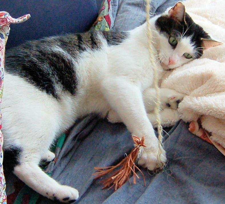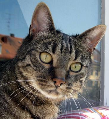 LILA ist 3 Jahre alt. Sie hat ein braun getigertes Fell mit einem weiß-lila Flecken im linken Auge (vgl. Foto). Sie ist eine reine Wohnungskatze und scheu.