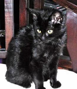 SISSY ist ca. 6 Jahre alt. Sie ist ganz schwarz und hat eine braune Verfärbung des rechten Auges. Sie ist sehr scheu.
