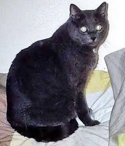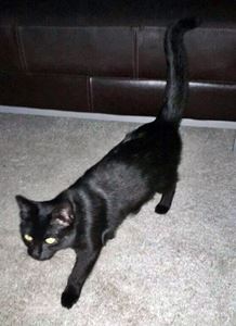 Kater THOMMY ist 8 Jahre alt. Er ist ein kräftiger Kater, sein Fell ist komplett schwarz. Seine Augenfarbe ist ein helles braun. THOMMY hat aufgrund eines Unfalls einen etwa um die Hälfte verkürzten Schwanz. THOMMY ist Freigänger und Fremden gegenüber zutraulich. **Leider existiert kein Foto**