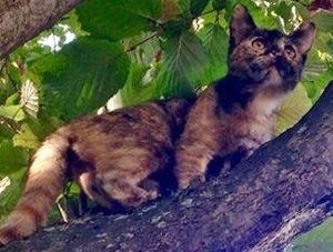 ELA ist ca. 8 Monate alt. Sie hat ein braun-schwarz getigertes längeres Fell. ELA ist erst seit kurzem Freigängerin, aber nie lange unterwegs. Sie ist Fremden gegenüber ziemlich vorsichtig.