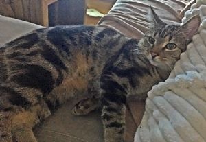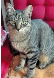 ZOEY ist 6 Jahre alt. Sie hat ein braun-schwarz gerädertes Fell mit weißem Kinnbereich. Sie hat grün-braune Augen. ZOEY ist Freigängerin. Sie ist Fremden gegenüber zutraulich, lässt sich aber nicht hochheben.