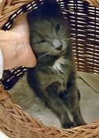Am Donnerstag, 16. Februar 2017 (abends): Diese ca. 7 Monate junge graue Fundkatze wurde im Petueltunnel in München gefunden. Sie saß in dem kleinen Nebentunnel der zur A 9 führt.