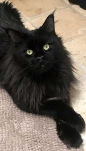 MADDOX ist ein Maine Coon-Kater und 2 Jahre alt. Er hat ein langes schwarzes Fell mit grauem Bauch und buschigem Schwanz. MADDOX ist erst seit kurzem bei seiner neuen Familie in Ismaning und kennt die Umgebung nur durch zwei Leinen-Spaziergänge. MADDOX ist Fremden gegenüber eher scheu.