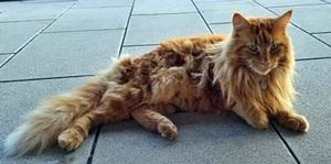 Kater ASCOT ist ca. 2 Jahre alt und ein Maine Coon-Mix. Er hat ein langes Fell mit rötlicher Tigerung und hellerem Schnauzen-/Kinnbereich. ASCOT ist ein reiner Wohnungskater und erst seit 3 Monaten bei seiner neuen Familie (früherer Wohnort Westendstr.). ASCOT kennt sich im Freien nicht aus und ist Fremden gegenüber sehr scheu.